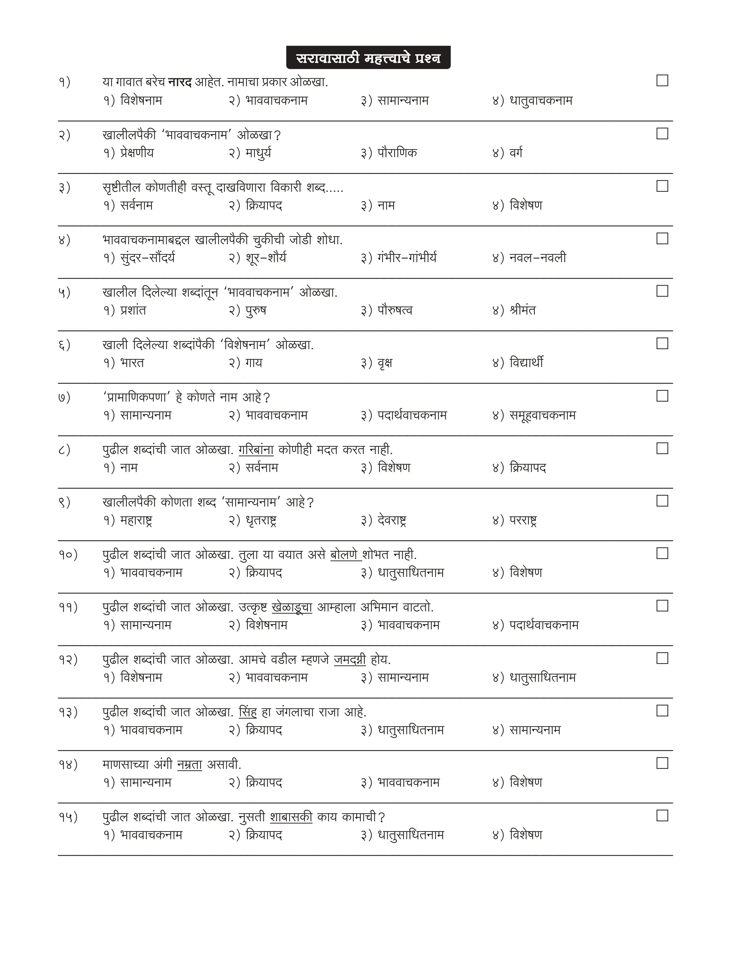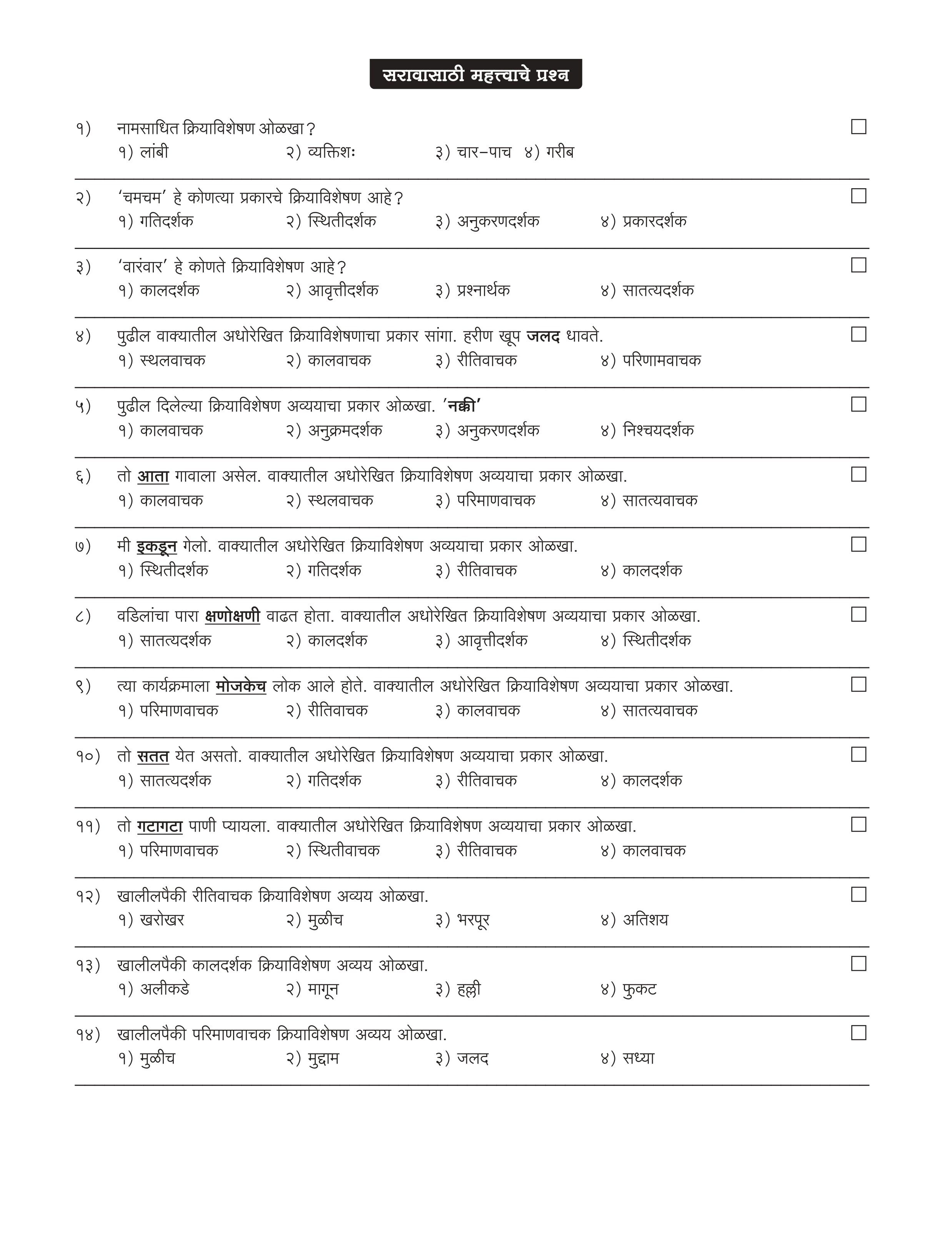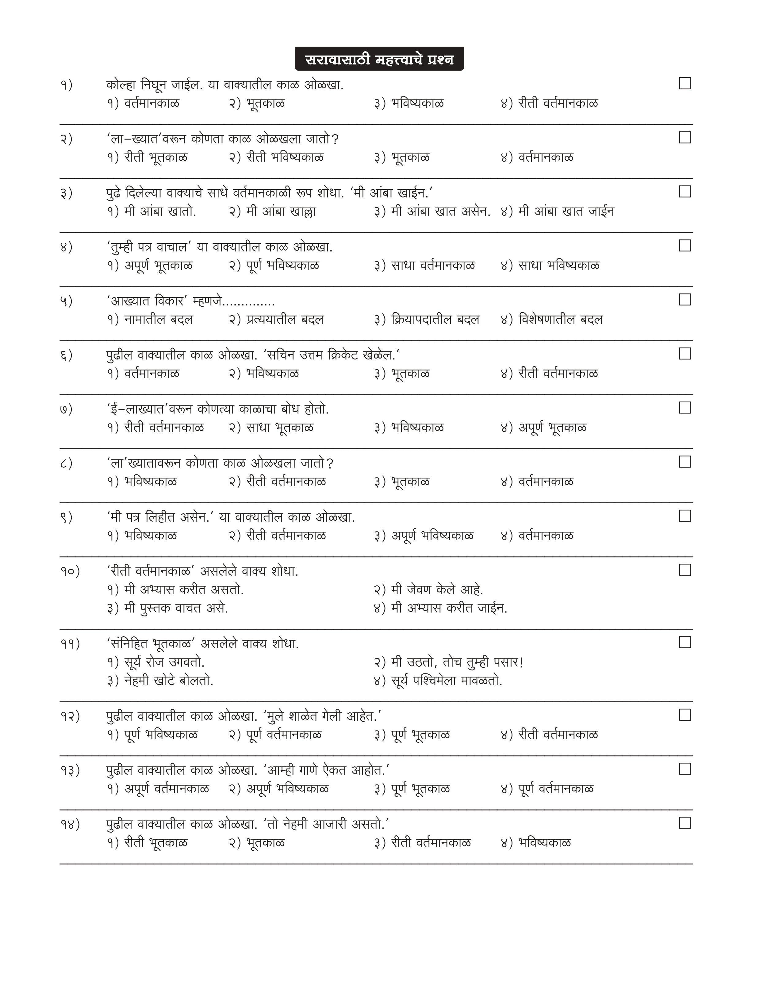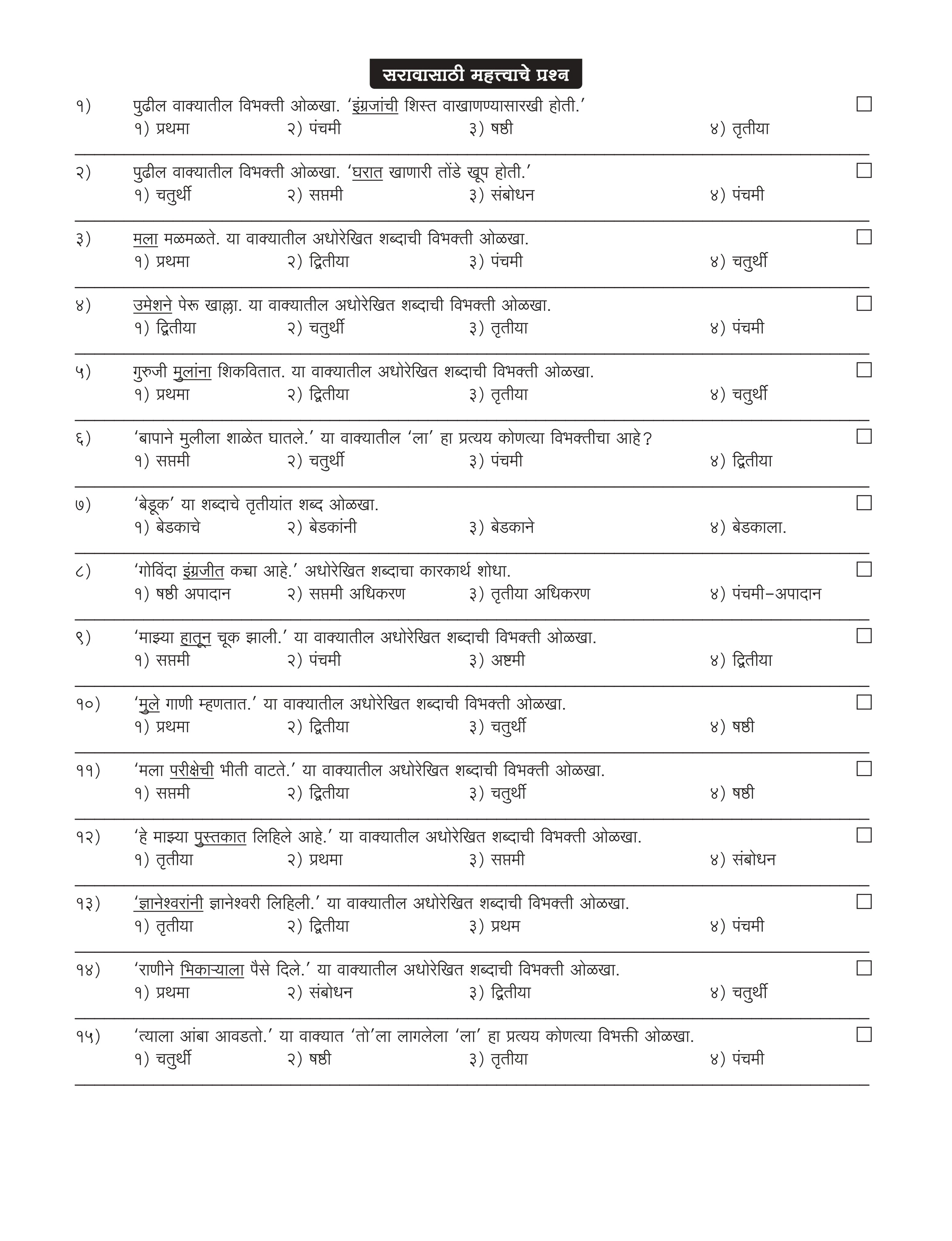 - प्रत्येक घटकावर सरावासाठी महत्त्वाचे प्रश्न